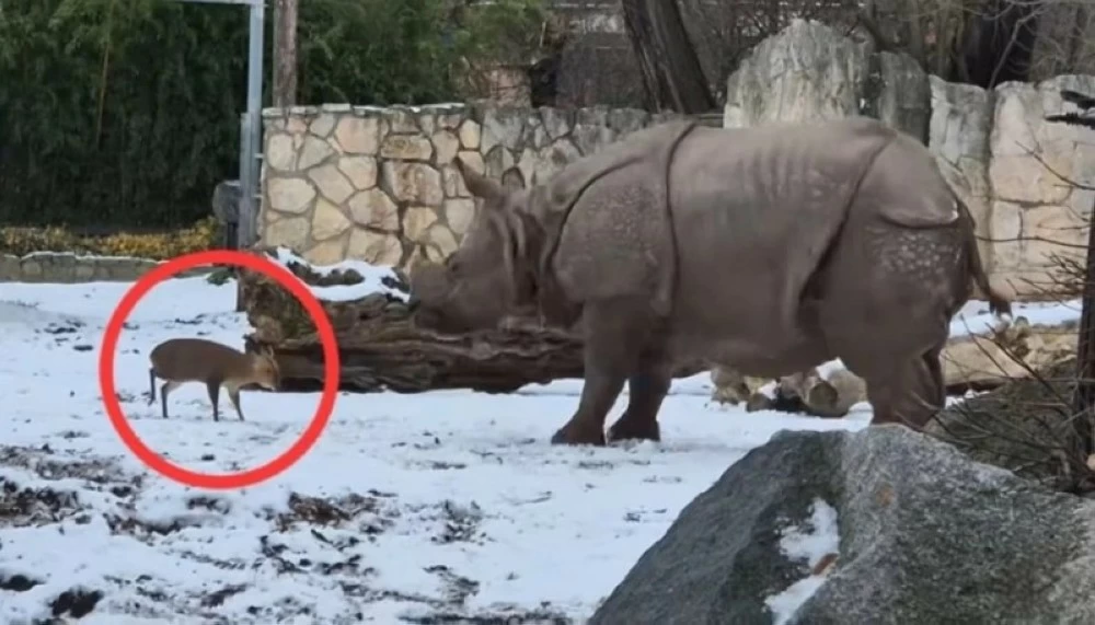 Social media users circulated a stunning video from the Wrocław Zoo in Poland showing a confrontation between the strongest and weakest of animals, featuring a small Chinese muntjac deer challenging the massive rhinoceros Marushka, who weighs 1.7 tons, in an unusual scene that attracted millions of viewers around the world.