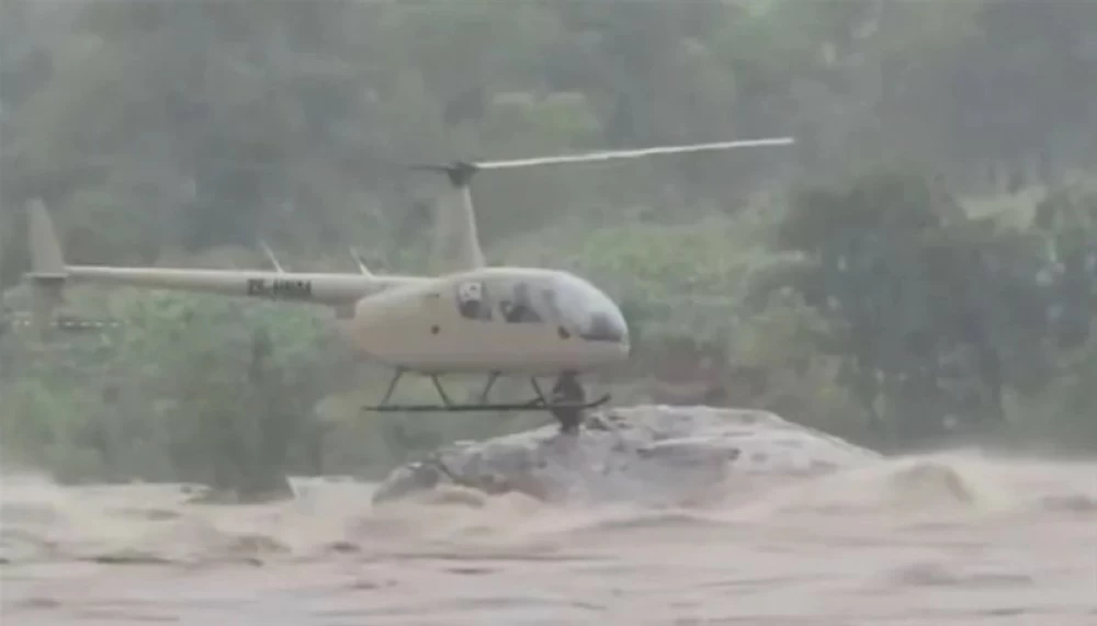 In a race against time and death, a rescue mission turned into one of the most dangerous aerial operations that held the breath of thousands, after a helicopter pilot succeeded in retrieving a young couple stranded for more than 27 hours on a remote rock in the middle of a raging river in Mozambique, in an incident that seemed closer to a cinematic scene than to reality.