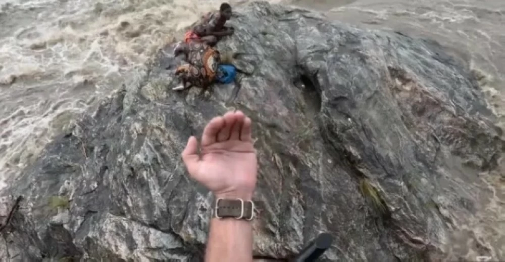 The story began when the couple attempted to cross a simple bridge to buy some supplies, only to be surprised by torrential floods that turned the river into an uncontrollable water monster. In a matter of moments, they found themselves trapped on a massive rock in the middle of the current, with no means of escape, in an area known for the presence of crocodiles and a dangerous waterfall located a short distance from their position.
