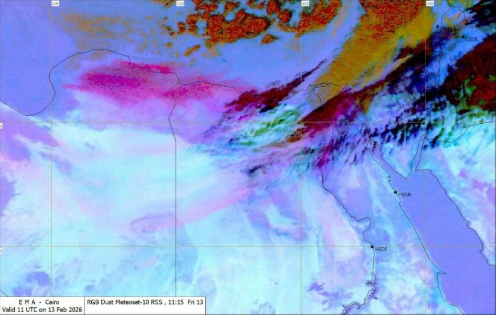 Dr. Manar Ghanem, a member of the media center at the General Authority for Meteorology, stated that the dust storm affecting the country today was the result of strong activity from southwestern winds carrying dust and sand from desert areas, confirming that the authority had previously warned of this weather condition, which is also part of the early "Khamaseen winds" wave, with fluctuations expected to continue until Tuesday, February 17, peaking today (Friday).