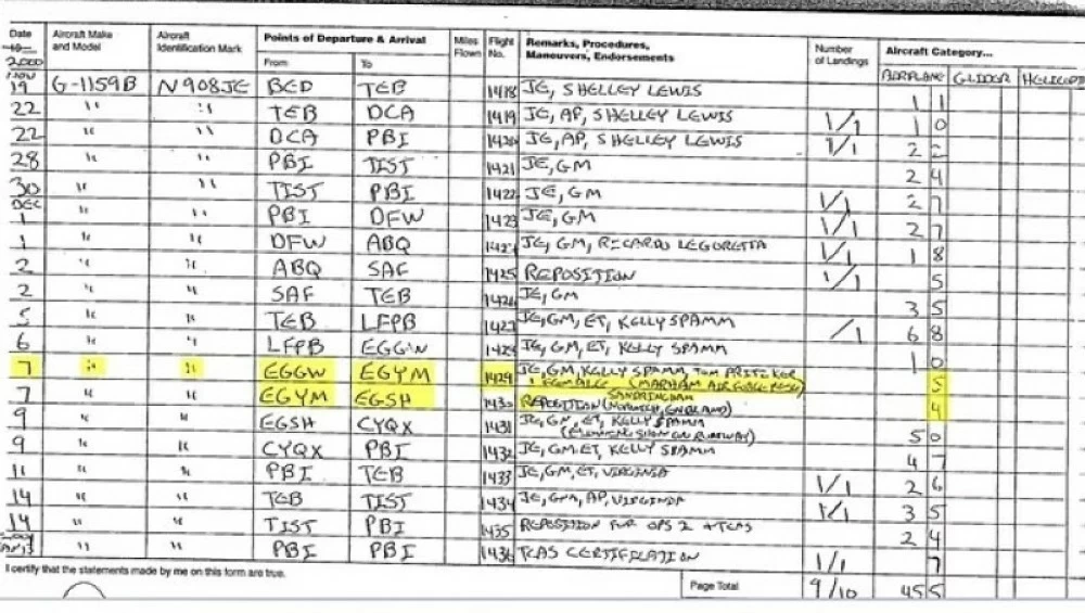 لكن الطائرة قامت أيضاً برحلات متكررة إلى مطارات بريطانية، بما في ذلك منشآت صغيرة قرب القصور الملكية في إنجلترا واسكتلندا، تزامناً مع زيارات إبستين المعروفة، غالباً برفقة الأمير أندرو.