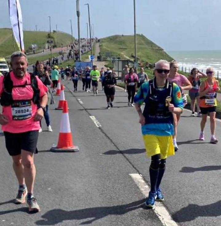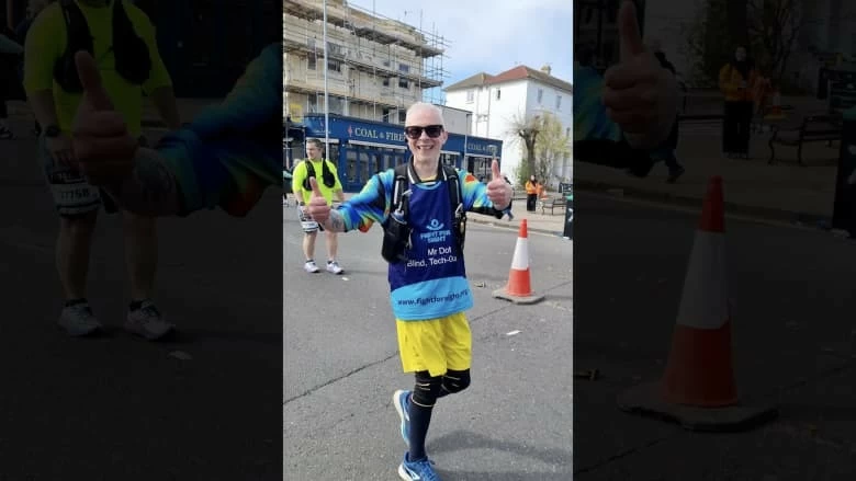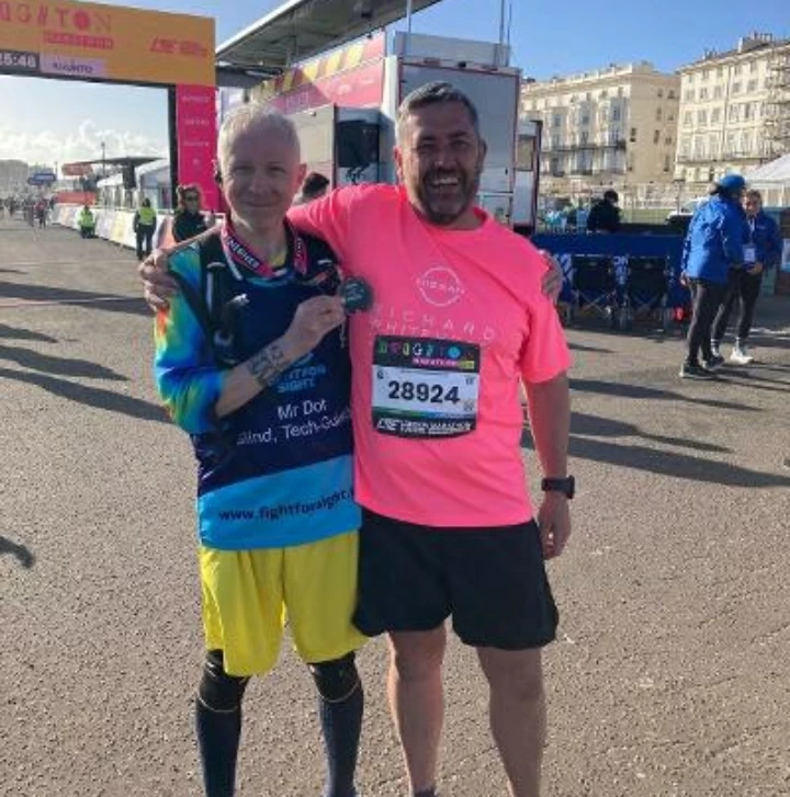 During his participation in the Brighton Marathon, Reynolds relied on smart glasses powered by artificial intelligence, connected to the Be My Eyes app, which allows live streaming of what the user sees to volunteers around the world.