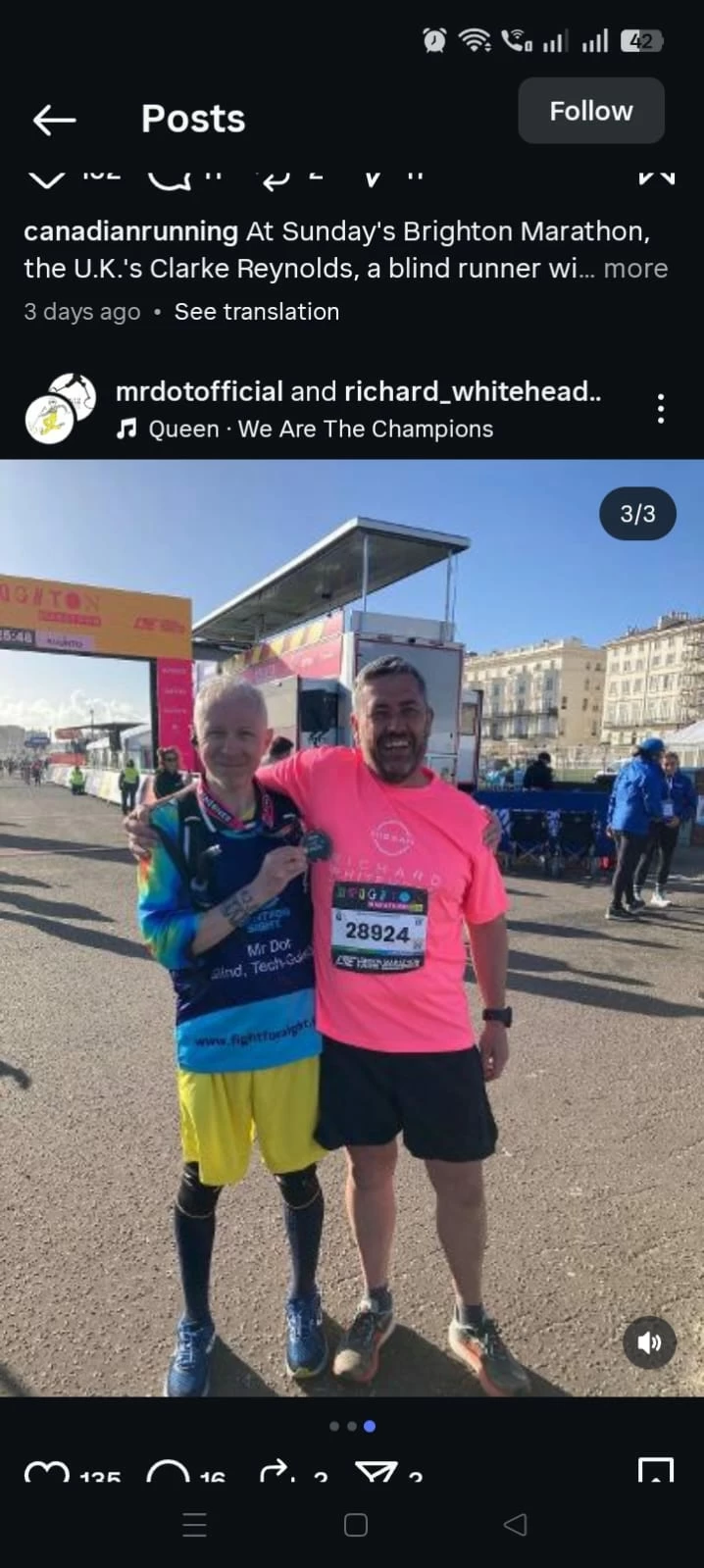 Reynolds participated in a race that spans 42.2 kilometers (26.2 miles), a significant challenge even for sighted runners, but this time he approached it in a different way that relied on technology instead of traditional human assistance.
