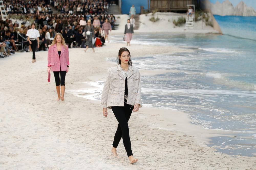 وحولت الدار، قاعة عرض جراند باليه في باريس إلى شاطئ ساحر، وارتدى أفراد الأمن زي حراس الشواطئ بينما ارتدت العارضات فساتين بلا أكمام بعضها مزدان بنقوش مرجانية وتنورات ملونة. طغى عليها اللون الأصفر الليموني والزهري والأبيض والأزرق، فيما ارتدت العارضات قبعات من القش التقليدي بتصاميم مبتكرة، وزينت أعناق العارضات إكسسوارات تحمل إسم وشعار الدار.