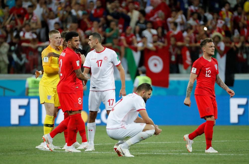 ودفعت إنجلترا الثمن عندما حصلت تونس على ركلة جزاء في نهاية الشوط الأول.