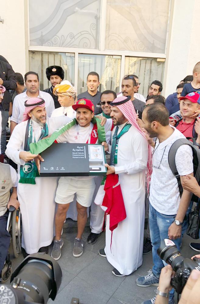 كرمت الهيئة العامة للرياضة جماهير المنتخب السعودي الذين تفاعلوا في الساحة الحمراء بموسكو، دعما للمنتخب قبل مباراة الأوروغواي، ولقيت تلك البادرة تفاعل الجماهير بمختلف ميولهم مع الأهازيج السعودية التي تم ترديدها من قبل السعوديين الموجودين في منطقة تجمع الجماهير العالمية. وشهدت الساحة حضورا لافتا من الجماهير التي أعلنت تفاؤلها بتقديم الأخضر مستويات مشرفة في لقاءاته القادمة.