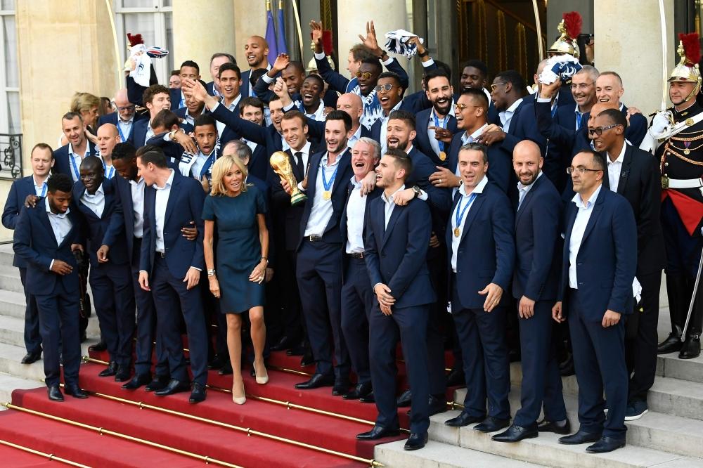 واستقبل ماكرون وزوجته بريجيت بعثة المنتخب في قصر الإليزيه، حيث دُعي نحو 3 آلاف شخص لحضور الحفل في حدائق المقر الرئاسي، منهم العديد من الشباب من أندية كرة القدم في العالم، ومنها بوندي حيث بدأ نجم المنتخب الحالي كيليان مبابي.